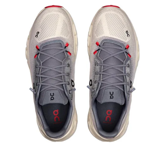 Swiss engineering, made by ON Running: This Cloudtilt comes with a breathable mesh upper in a light “Ivory”, light grey